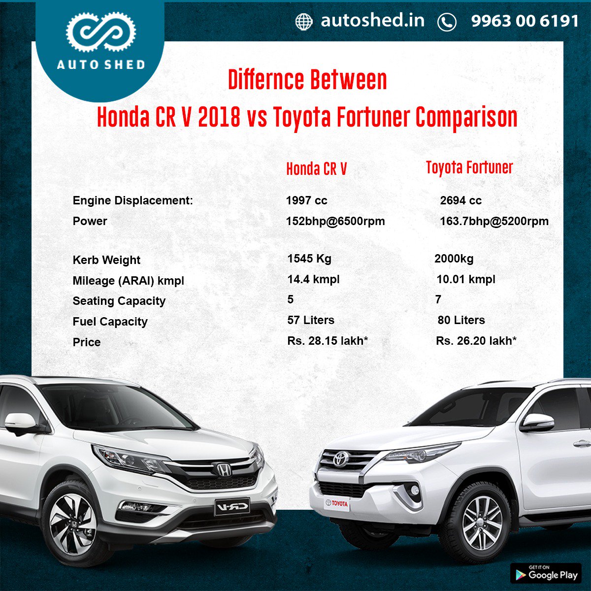 Honda Cr V Vs Toyota Fortuner Comparison Autox